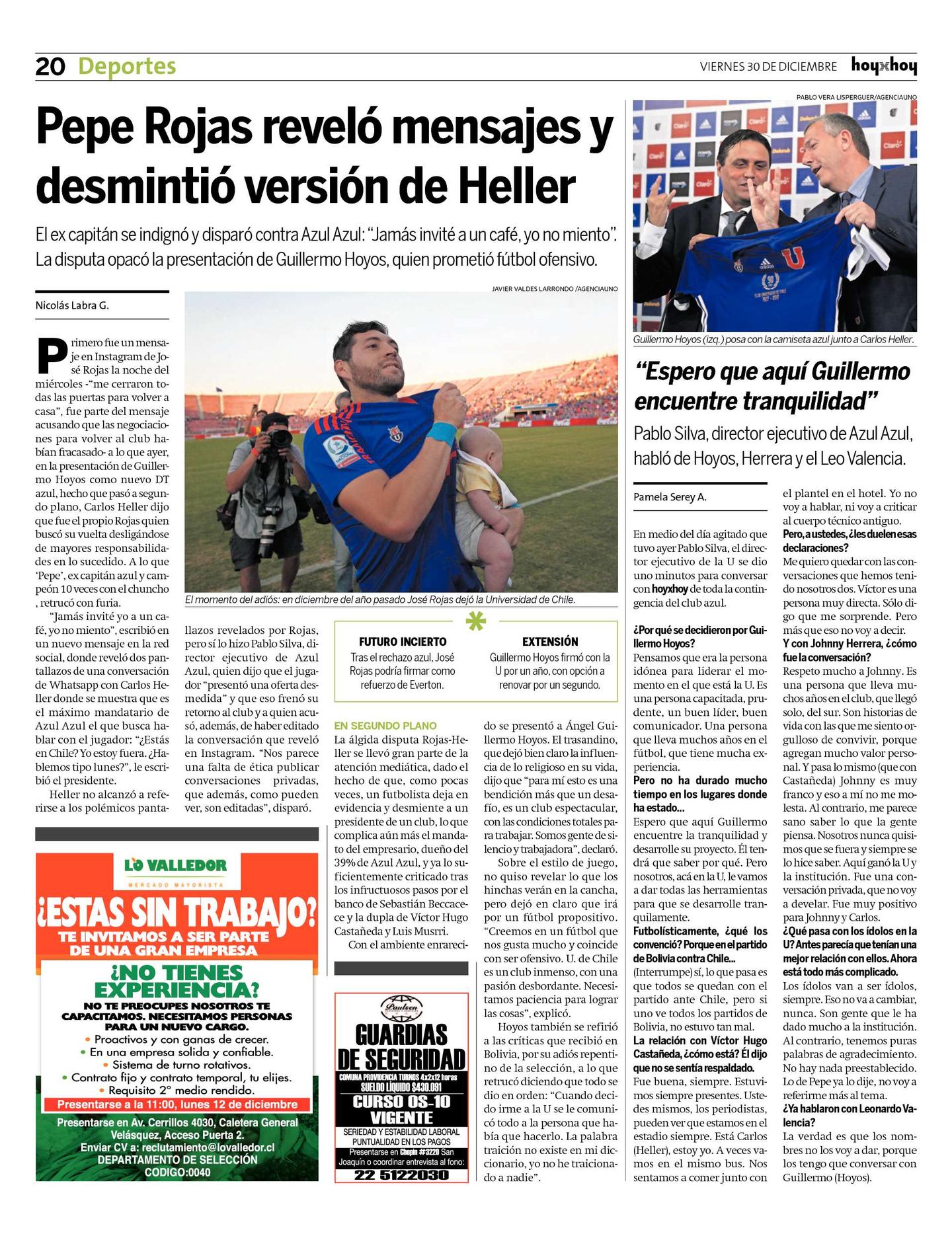 Primero fue un mensaje en Instagram de José Rojas la noche del miércoles -"me cerraron todas las puertas para volver a casa", fue parte del mensaje acusando que las negociaciones para volver al club habían fracasado- a lo que ayer, en la presentación de Guillermo Hoyos como nuevo DT azul, hecho que pasó a segundo plano, Carlos Heller dijo que fue el propio Rojas quien buscó su vuelta desligándose de mayores responsabilidades en lo sucedido. A lo que 'Pepe', ex capitán azul y campeón 10 veces con el chuncho , retrucó con furia.