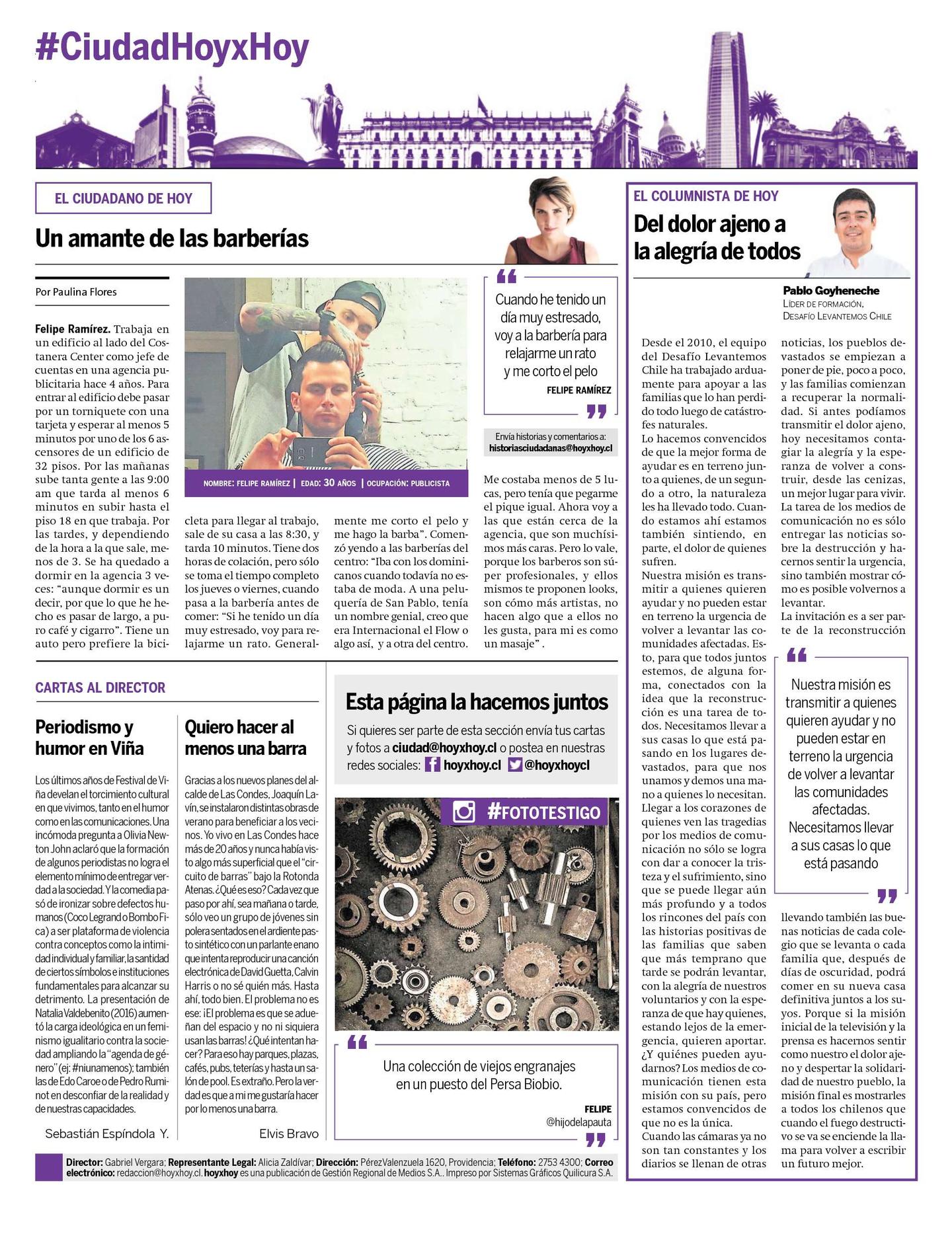Envía historias y comentarios a: historiasciudadanas@hoyxhoy.cl