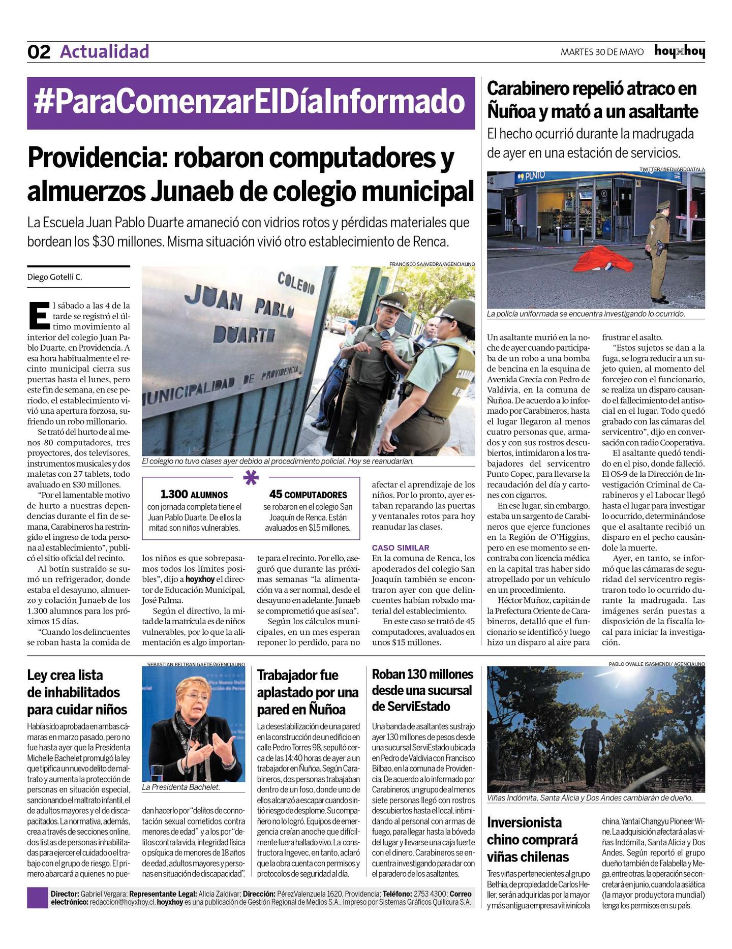 El sábado a las 4 de la tarde se registró el último movimiento al interior del colegio Juan Pablo Duarte, en Providencia. A esa hora habitualmente el recinto municipal cierra sus puertas hasta el lunes, pero este fin de semana, en ese periodo, el establecimiento vivió una apertura forzosa, sufriendo un robo millonario.