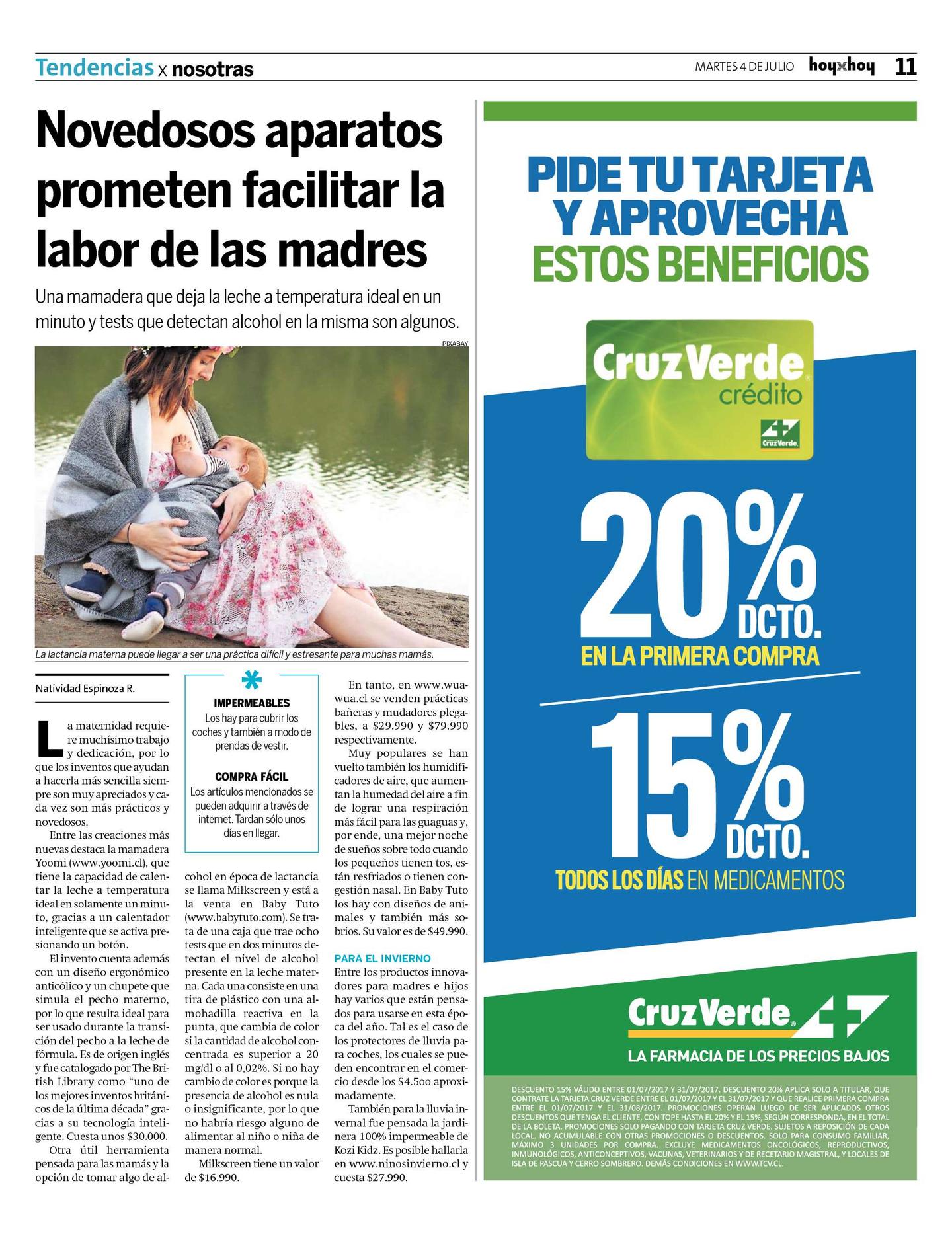 Entre las creaciones más nuevas destaca la mamadera Yoomi (www.yoomi.cl), que tiene la capacidad de calentar la leche a temperatura ideal en solamente un minuto, gracias a un calentador inteligente que se activa presionando un botón.