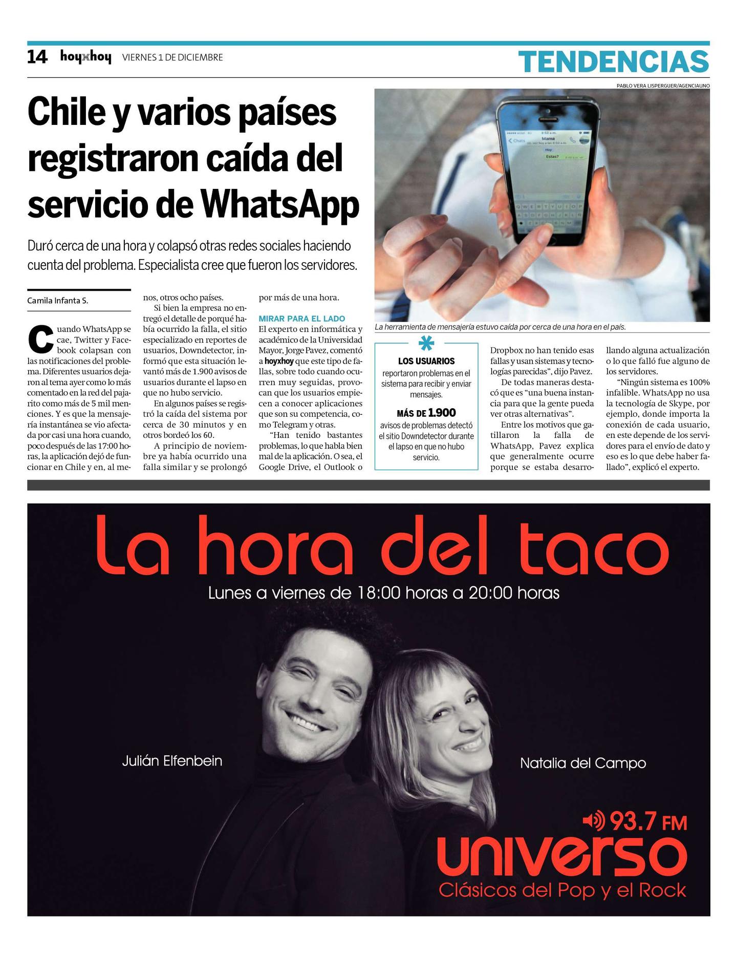 "Ningún sistema es 100% infalible. WhatsApp no usa la tecnología de Skype, por ejemplo, donde importa la conexión de cada usuario, en este depende de los servidores para el envío de dato y eso es lo que debe haber fallado", explicó el experto.