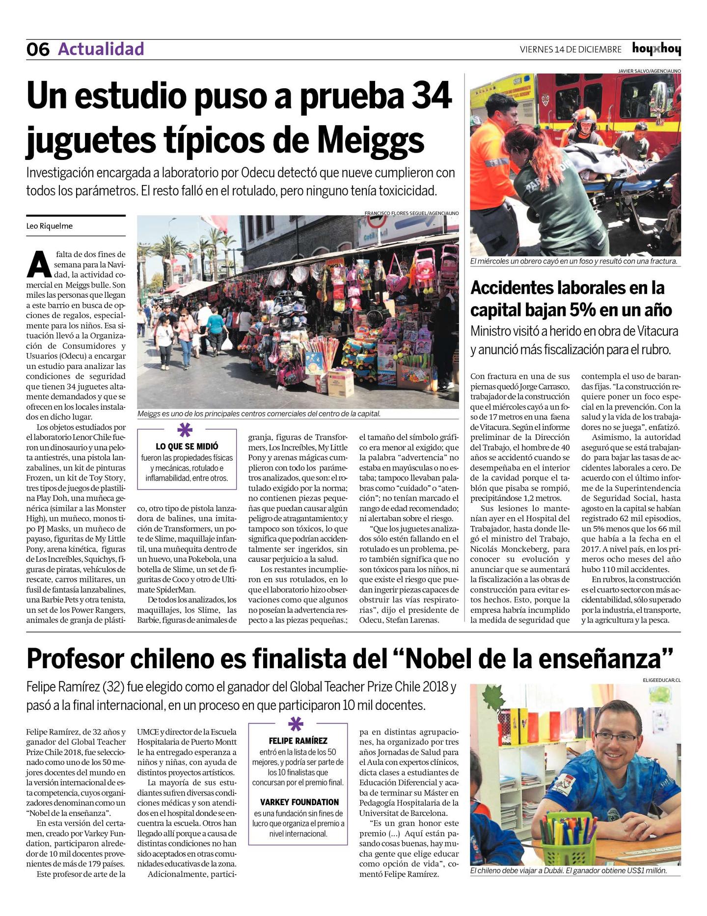 A falta de dos fines de semana para la Navidad, la actividad comercial en Meiggs bulle. Son miles las personas que llegan a este barrio en busca de opciones de regalos, especialmente para los niños. Esa situación llevó a la Organización de Consumidores y Usuarios (Odecu) a encargar un estudio para analizar las condiciones de seguridad que tienen 34 juguetes altamente demandados y que se ofrecen en los locales instalados en dicho lugar.