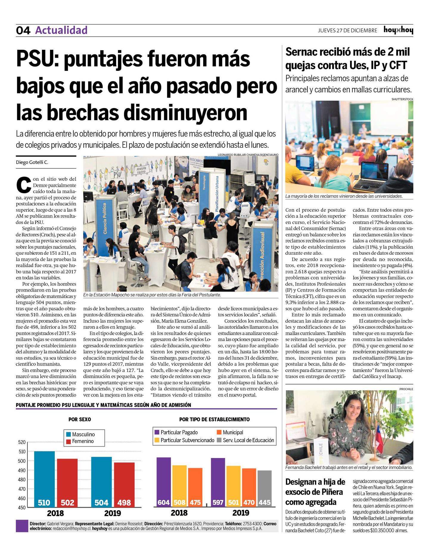 Dos años después de obtener su título de ingeniería comercial en la UC y sin estudios de posgrado, Fernanda Bachelet Coto (27) fue designada como agregada comercial de Chile en Nueva York. Según reveló La Tercera, ella es hija de un exsocio del Presidente Sebastián Piñera, quien además es primo en segundo grado de la exPresidenta Michelle Bachelet. La ingeniera fue nombrada por el Mandatario y su sueldo es $10.350.000 al mes.