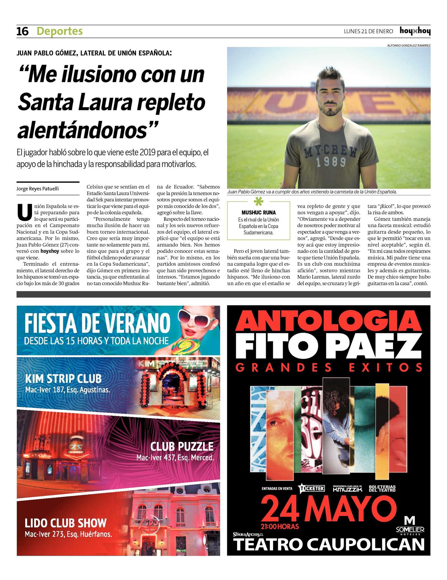 Unión Española se está preparando para lo que será su participación en el Campeonato Nacional y en la Copa Sudamericana. Por lo mismo, Juan Pablo Gómez (27) conversó con hoyxhoy sobre lo que viene.