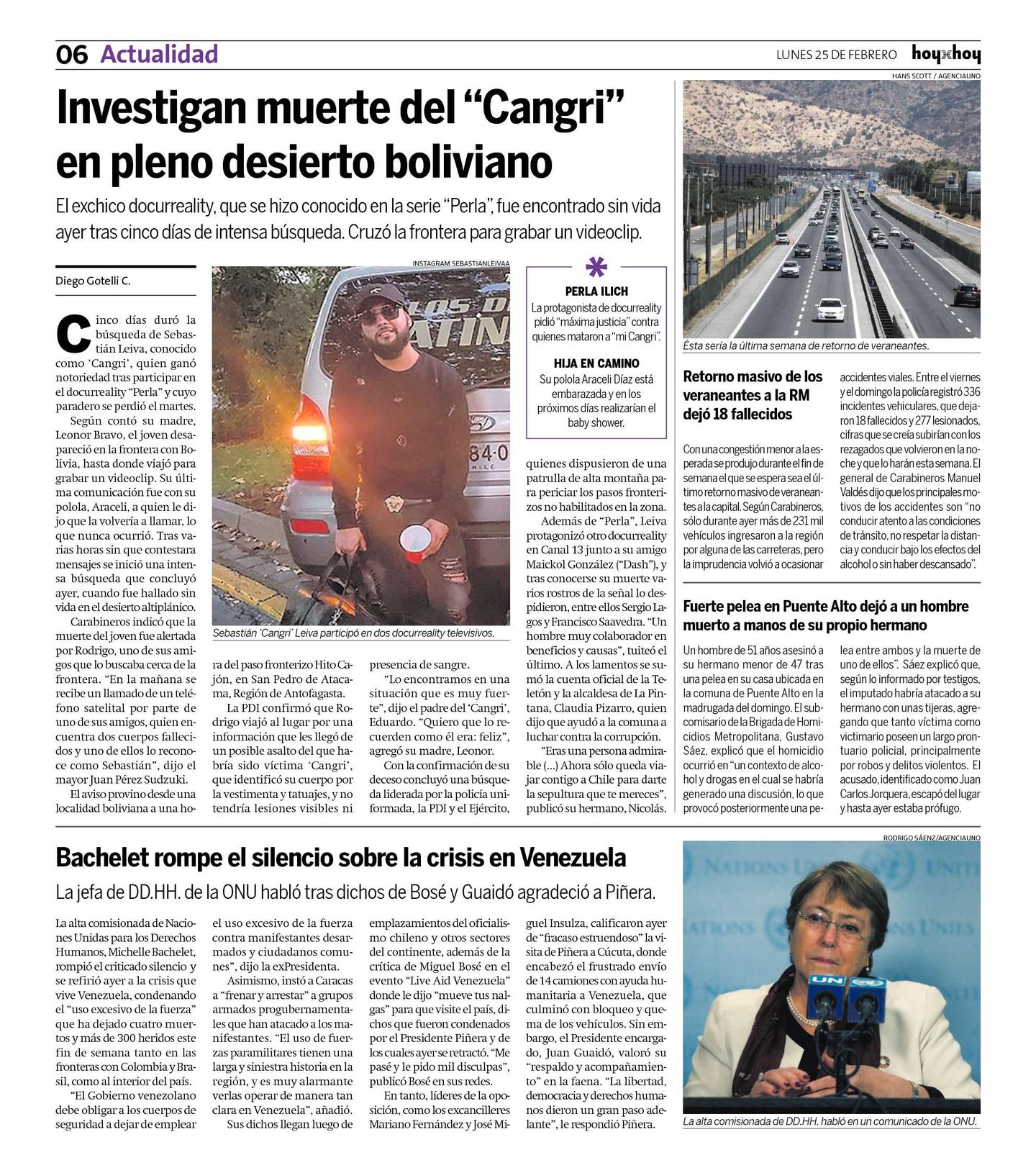 Según contó su madre, Leonor Bravo, el joven desapareció en la frontera con Bolivia, hasta donde viajó para grabar un videoclip. Su última comunicación fue con su polola, Araceli, a quien le dijo que la volvería a llamar, lo que nunca ocurrió. Tras varias horas sin que contestara mensajes se inició una intensa búsqueda que concluyó ayer, cuando fue hallado sin vida en el desierto altiplánico.