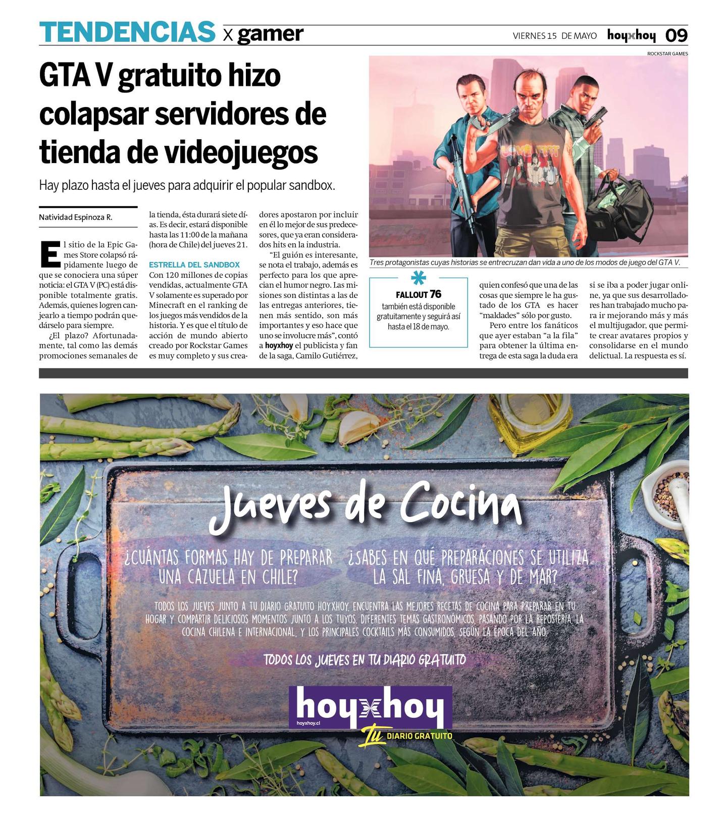 "El guión es interesante, se nota el trabajo, además es perfecto para los que aprecian el humor negro. Las misiones son distintas a las de las entregas anteriores, tienen más sentido, son más importantes y eso hace que uno se involucre más", contó a hoyxhoy el publicista y fan de la saga, Camilo Gutiérrez, quien confesó que una de las cosas que siempre le ha gustado de los GTA es hacer "maldades" sólo por gusto.