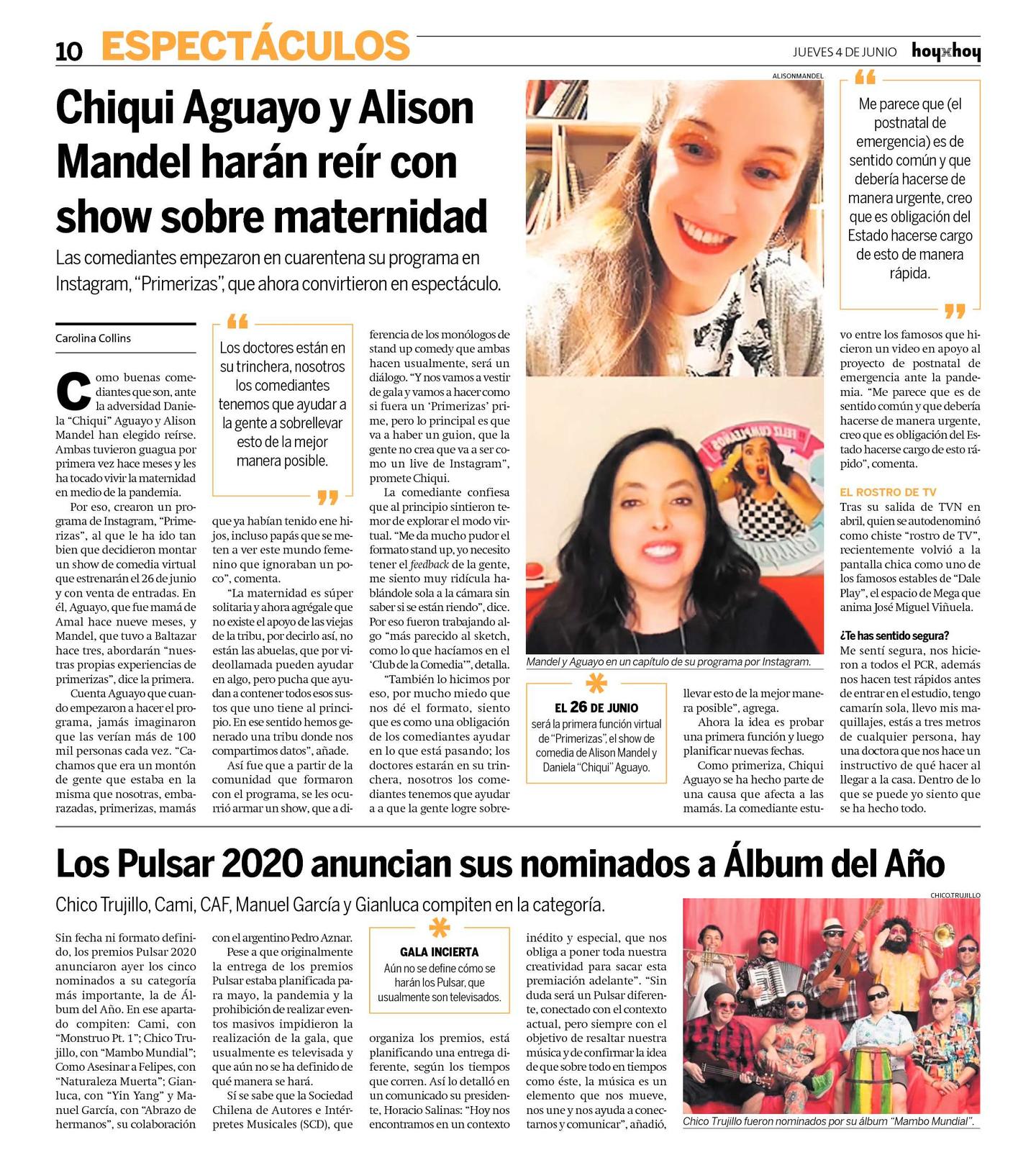 Por eso, crearon un programa de Instagram, "Primerizas", al que le ha ido tan bien que decidieron montar un show de comedia virtual que estrenarán el 26 de junio y con venta de entradas. En él, Aguayo, que fue mamá de Amal hace nueve meses, y Mandel, que tuvo a Baltazar hace tres, abordarán "nuestras propias experiencias de primerizas", dice la primera.