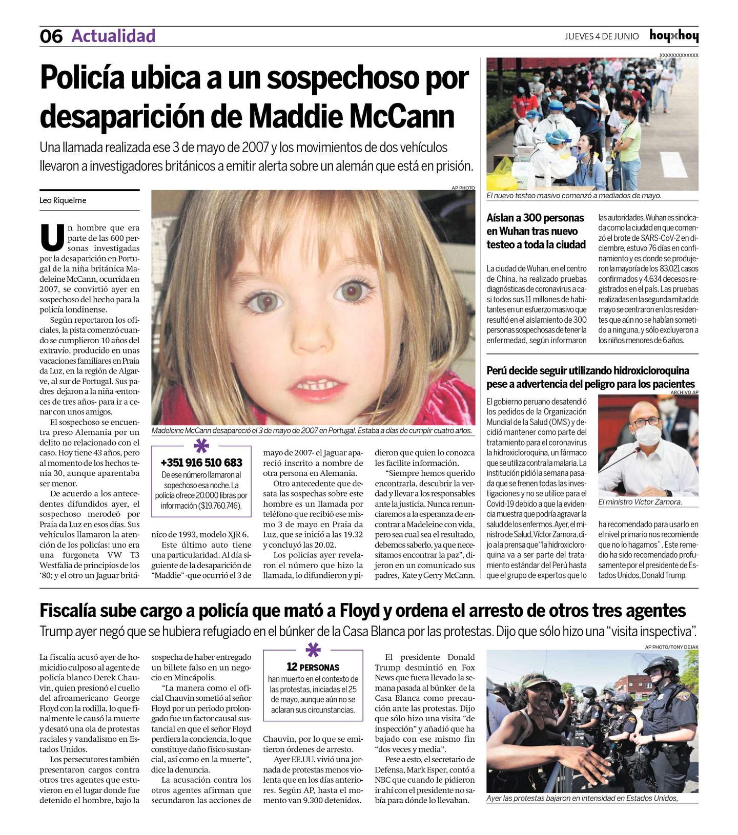 Policía ubica a un sospechoso por desaparición de Maddie McCann