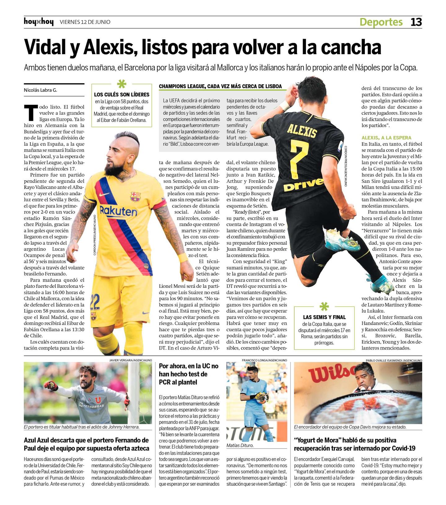 Todo listo. El fútbol vuelve a las grandes ligas en Europa. Ya lo hizo en Alemania con la Bundesliga y ayer fue el turno de la primera división de la Liga en España, a la que mañana se sumará Italia con la Copa local, y a la espera de la Premier League, que lo hará desde el miércoles 17.