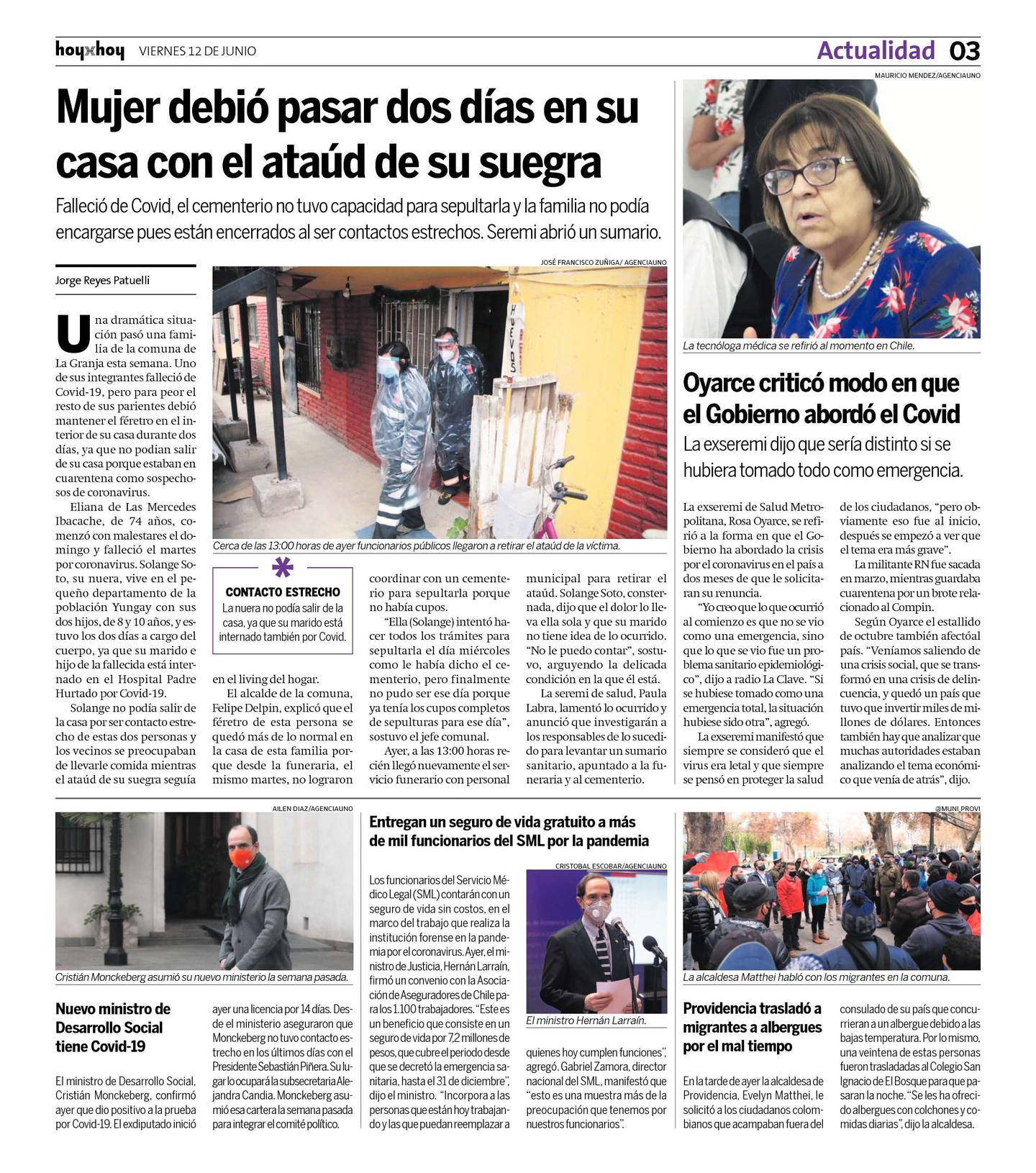 Una dramática situación pasó una familia de la comuna de La Granja esta semana. Uno de sus integrantes falleció de Covid-19, pero para peor el resto de sus parientes debió mantener el féretro en el interior de su casa durante dos días, ya que no podian salir de su casa porque estaban en cuarentena como sospechosos de coronavirus.