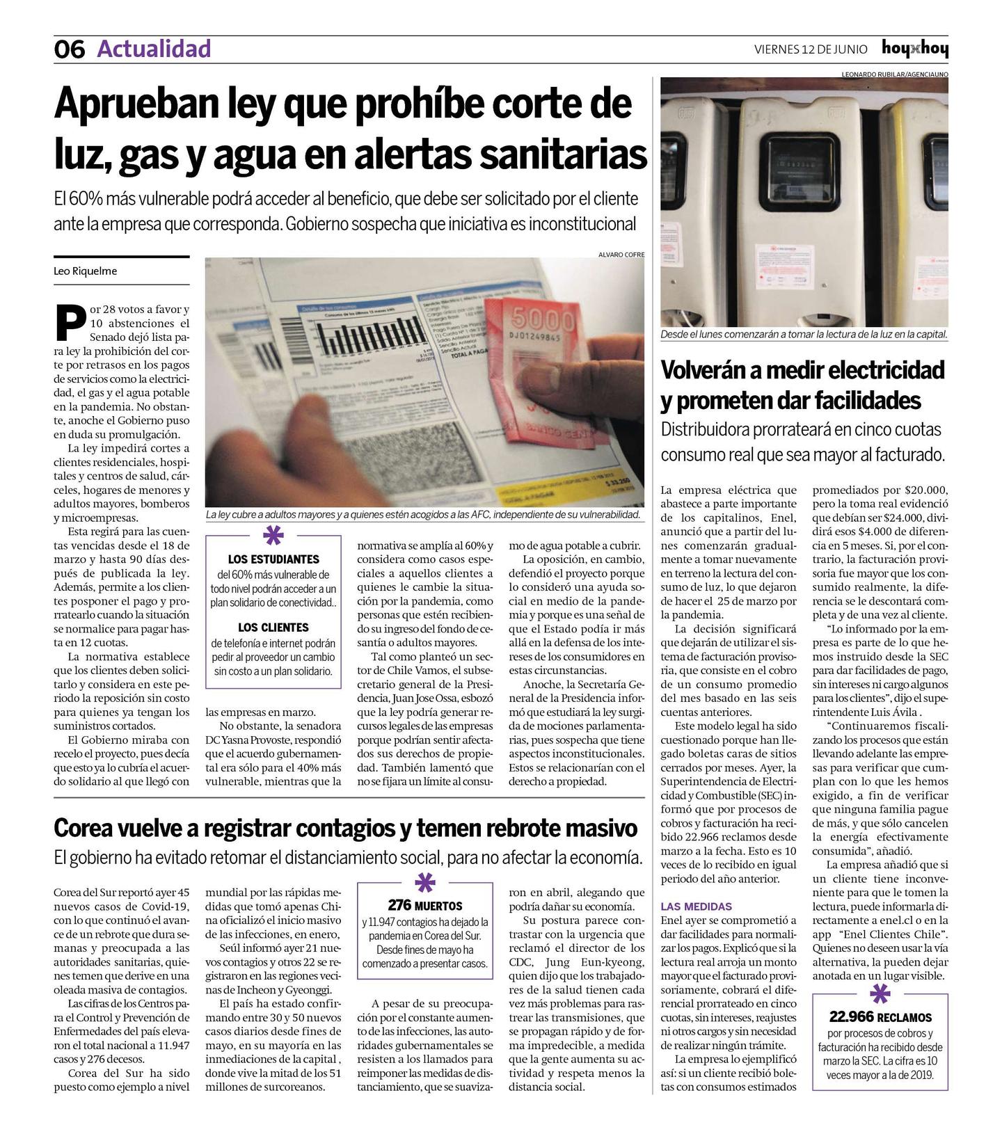 Por 28 votos a favor y 10 abstenciones el Senado dejó lista para ley la prohibición del corte por retrasos en los pagos de servicios como la electricidad, el gas y el agua potable en la pandemia. No obstante, anoche el Gobierno puso en duda su promulgación.