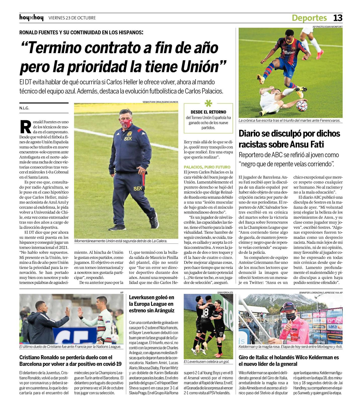El jugador de Barcelona Ansu Fati recibió ayer la disculpa de un diario español por haber sido objeto de una descripción racista por parte de uno de sus periodistas. El reportero de ABC Salvador Sostres escribió en su crónica del martes sobre la victoria del Barça sobre Ferencvaros en la Champions League que "Ansu corriendo tiene algo de gacela, de mantero jovencísimo y negro que de repente veías corriendo" escapando de la policía.
