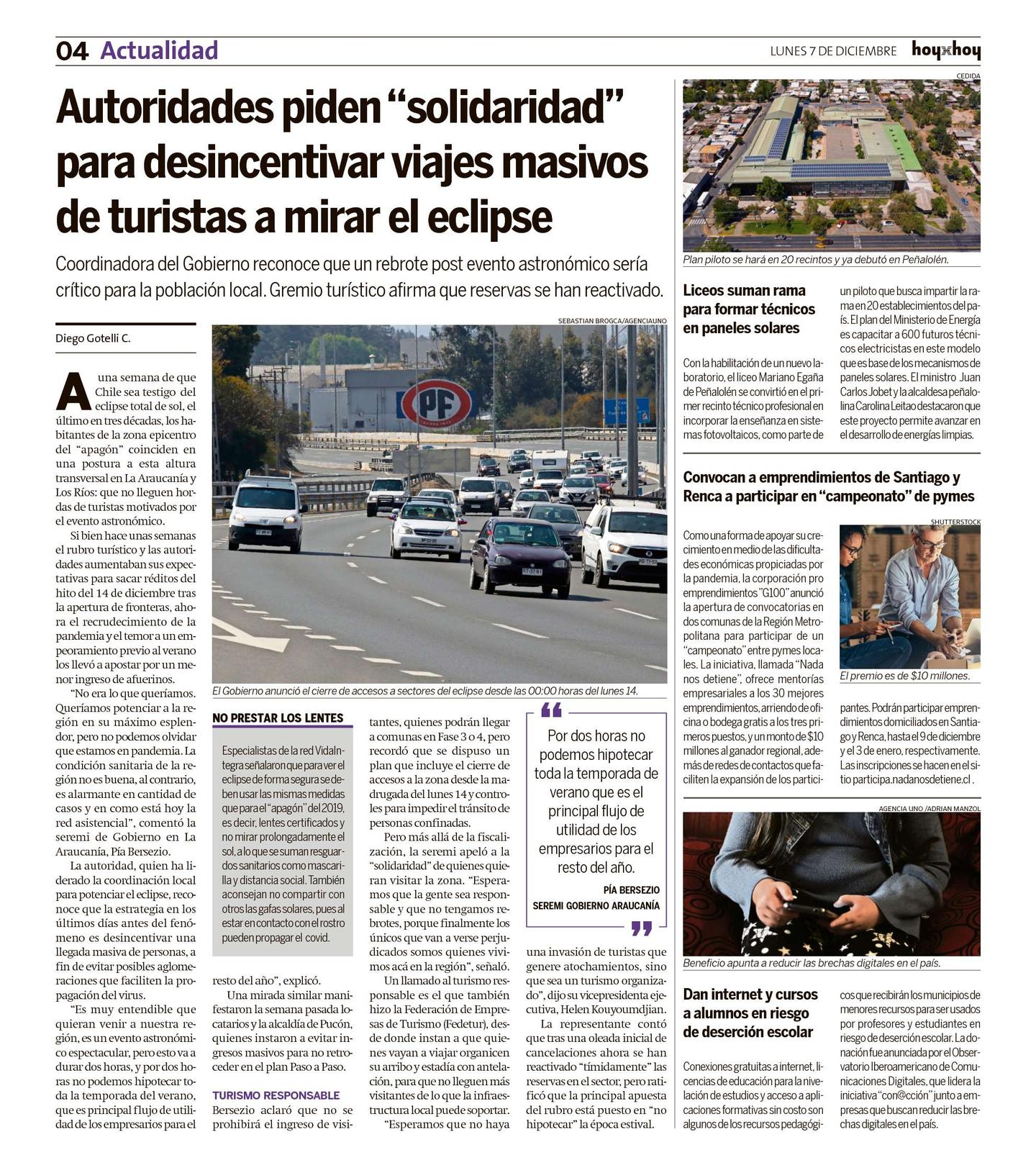 "Es muy entendible que quieran venir a nuestra región, es un evento astronómico espectacular, pero esto va a durar dos horas, y por dos horas no podemos hipotecar toda la temporada del verano, que es principal flujo de utilidad de los empresarios para el resto del año", explicó.