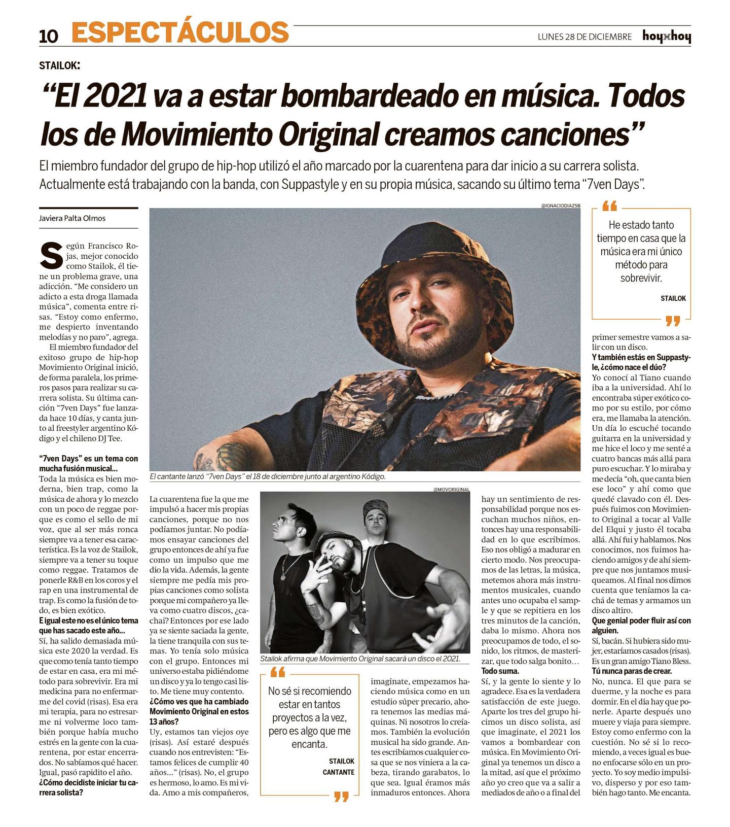 "El 2021 va a estar bombardeado en música. Todos los de Movimiento Original creamos canciones"