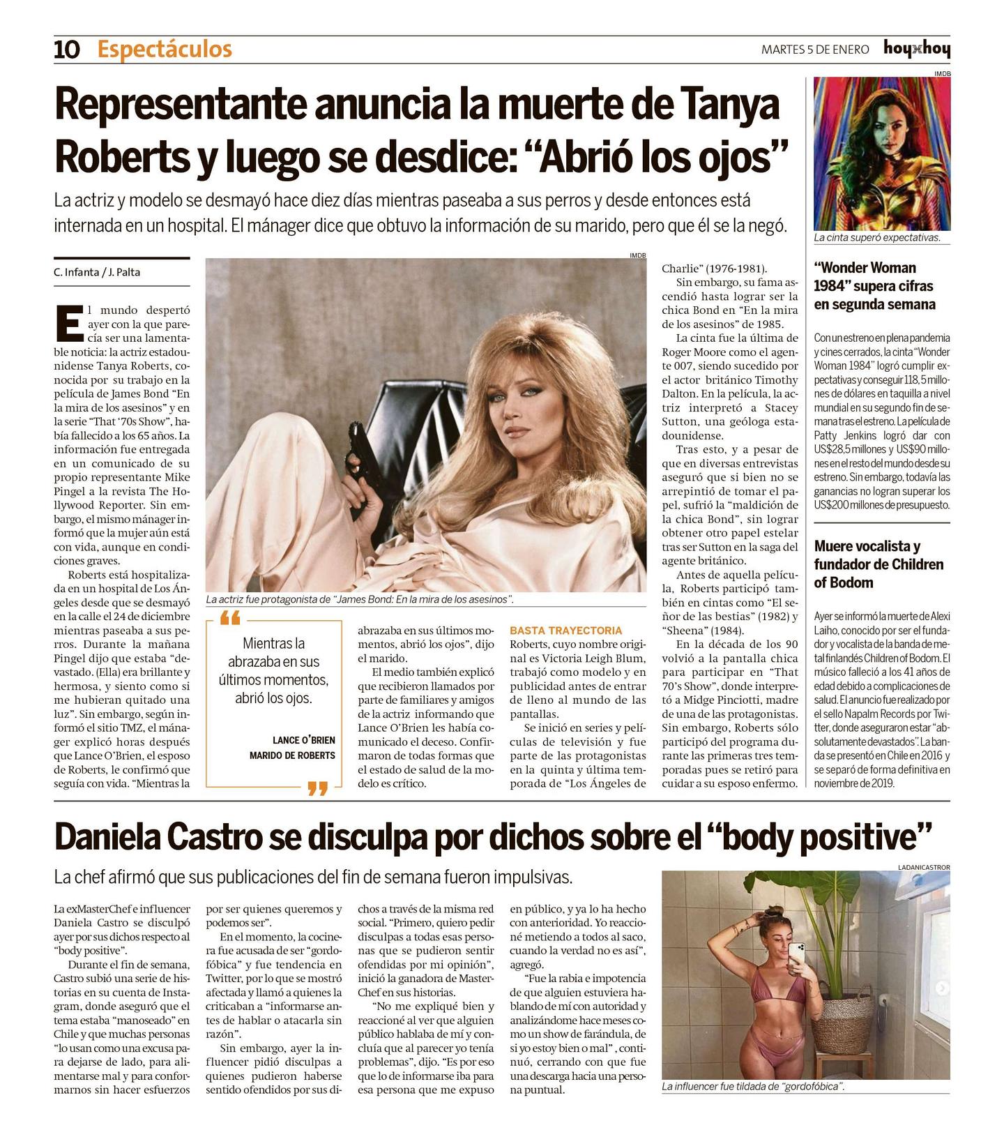 El mundo despertó ayer con la que parecía ser una lamentable noticia: la actriz estadounidense Tanya Roberts, conocida por su trabajo en la película de James Bond "En la mira de los asesinos" y en la serie "That '70s Show", había fallecido a los 65 años. La información fue entregada en un comunicado de su propio representante Mike Pingel a la revista The Hollywood Reporter. Sin embargo, el mismo mánager informó que la mujer aún está con vida, aunque en condiciones graves.