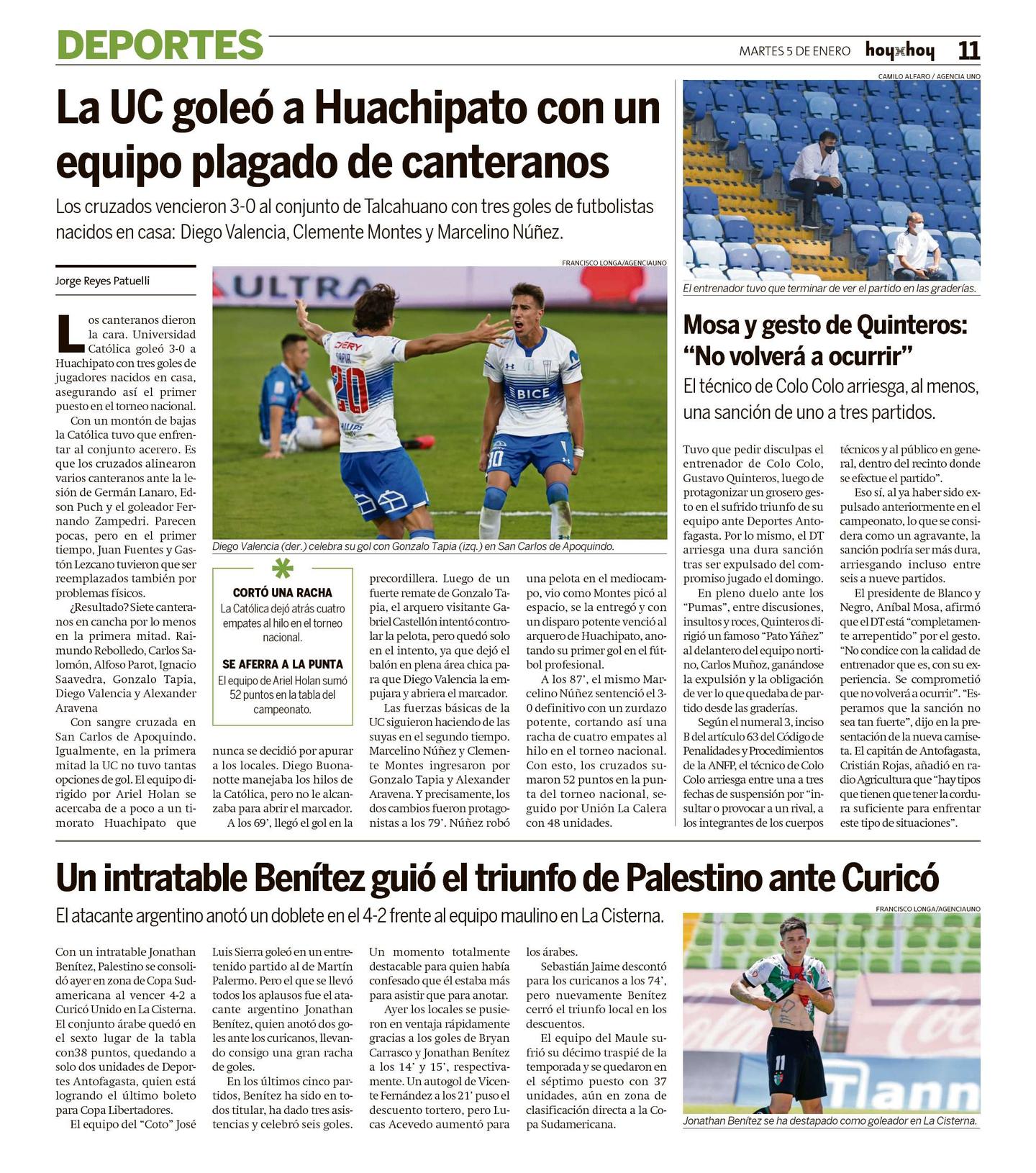 A los 87', el mismo Marcelino Núñez sentenció el 3-0 definitivo con un zurdazo potente, cortando así una racha de cuatro empates al hilo en el torneo nacional. Con esto, los cruzados sumaron 52 puntos en la punta del torneo nacional, seguido por Unión La Calera con 48 unidades.