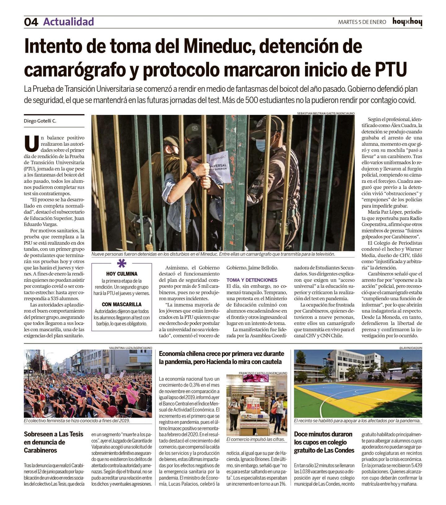 La Prueba de Transición Universitaria se comenzó a rendir en medio de fantasmas del boicot del año pasado. Gobierno defendió plan de seguridad, el que se mantendrá en las futuras jornadas del test. Más de 500 estudiantes no la pudieron rendir por contagio covid.