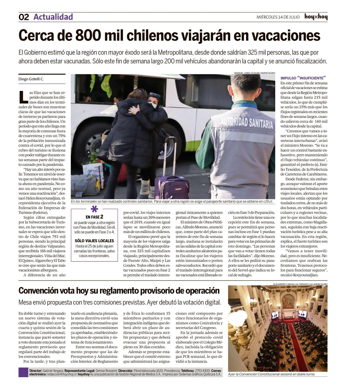 El Gobierno estimó que la región con mayor éxodo será la Metropolitana, desde donde saldrían 325 mil personas, las que por ahora deben estar vacunadas. Sólo este fin de semana largo 200 mil vehículos abandonarán la capital y se anunció fiscalización.