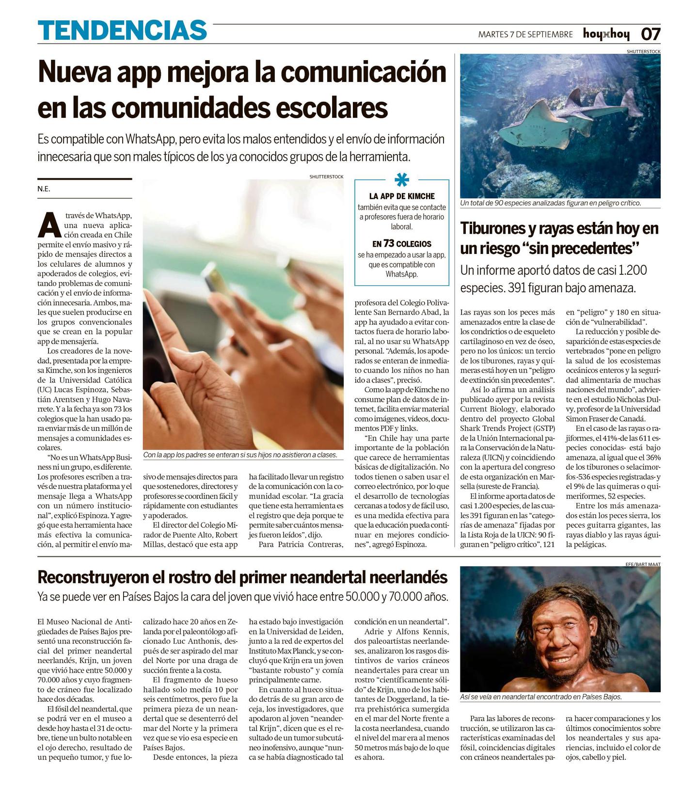 Los creadores de la novedad, presentada por la empresa Kimche, son los ingenieros de la Universidad Católica (UC) Lucas Espinoza, Sebastián Arentsen y Hugo Navarrete. Y a la fecha ya son 73 los colegios que la han usado para enviar más de un millón de mensajes a comunidades escolares.
