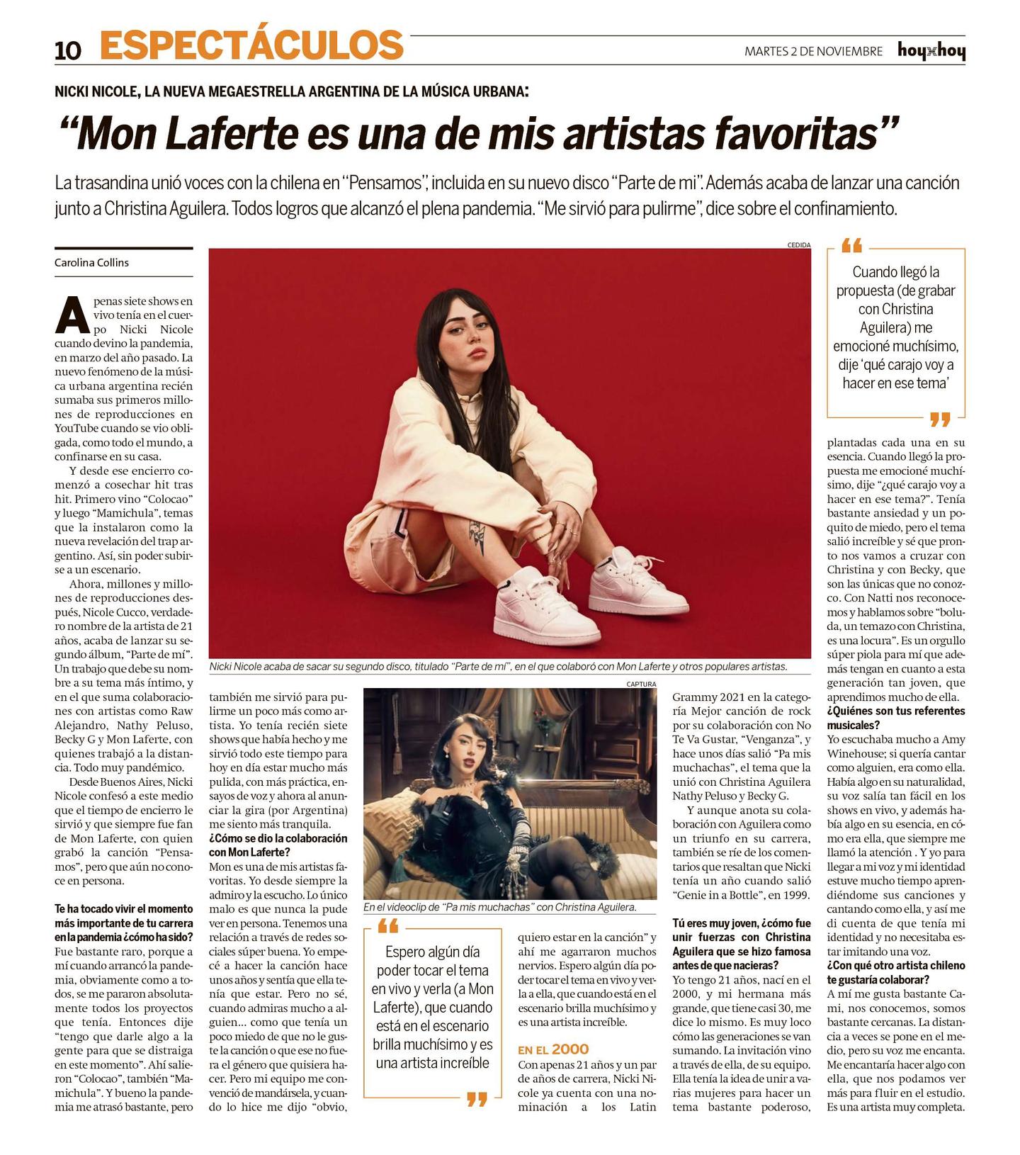 Desde Buenos Aires, Nicki Nicole confesó a este medio que el tiempo de encierro le sirvió y que siempre fue fan de Mon Laferte, con quien grabó la canción "Pensamos", pero que aún no conoce en persona.