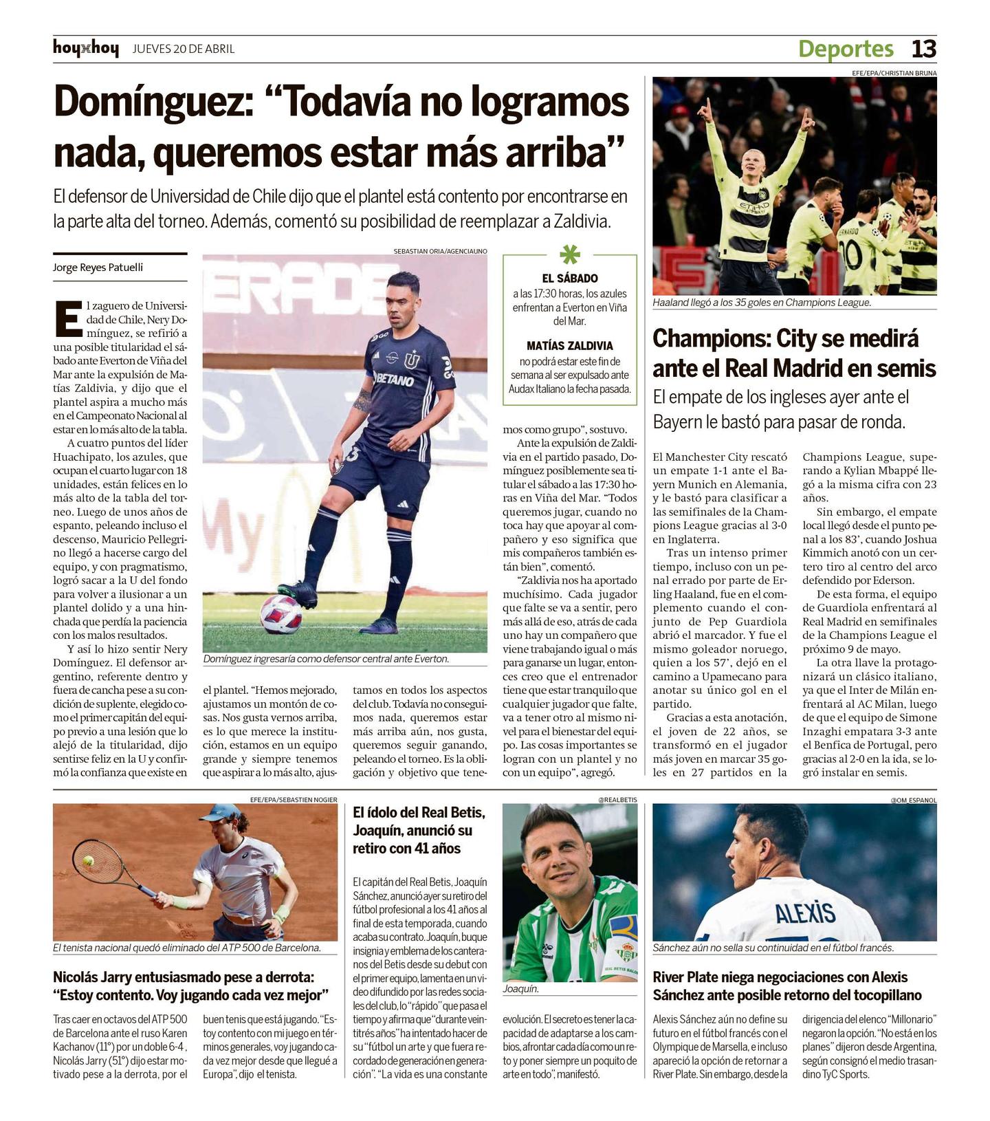 El zaguero de Universidad de Chile, Nery Domínguez, se refirió a una posible titularidad el sábado ante Everton de Viña del Mar ante la expulsión de Matías Zaldivia, y dijo que el plantel aspira a mucho más en el Campeonato Nacional al estar en lo más alto de la tabla.