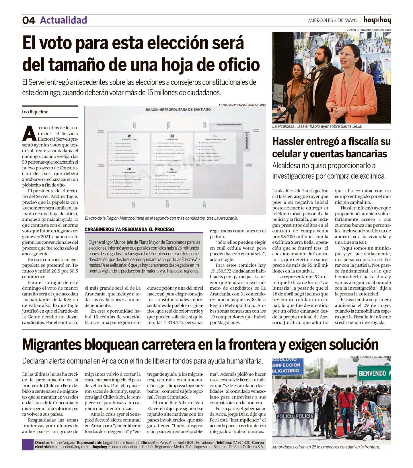 El presidente del directorio del Servel, Andrés Tagle, precisó que la papeleta con los nombres será similar al tamaño de una hoja de oficio, aunque algo más alargada, lo que contrasta con el enorme voto que hubo en algunas regiones en 2021, cuando se eligieron los convencionales del proceso que fue rechazado al año siguiente.
