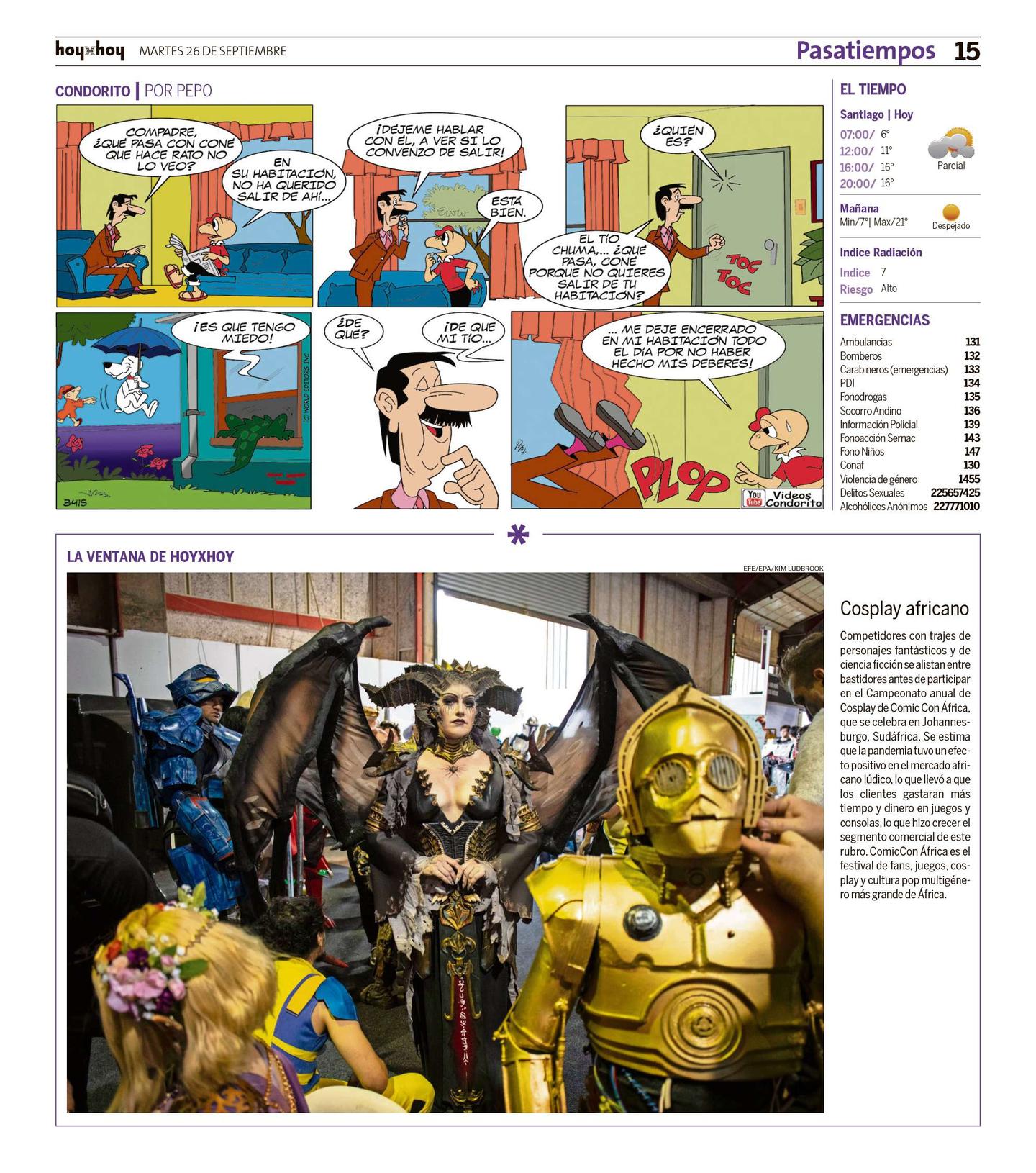 Competidores con trajes de personajes fantásticos y de ciencia ficción se alistan entre bastidores antes de participar en el Campeonato anual de Cosplay de Comic Con África, que se celebra en Johannesburgo, Sudáfrica. Se estima que la pandemia tuvo un efecto positivo en el mercado africano lúdico, lo que llevó a que los clientes gastaran más tiempo y dinero en juegos y consolas, lo que hizo crecer el segmento comercial de este rubro. ComicCon África es el festival de fans, juegos, cosplay y cultura pop multigénero más grande de África.
