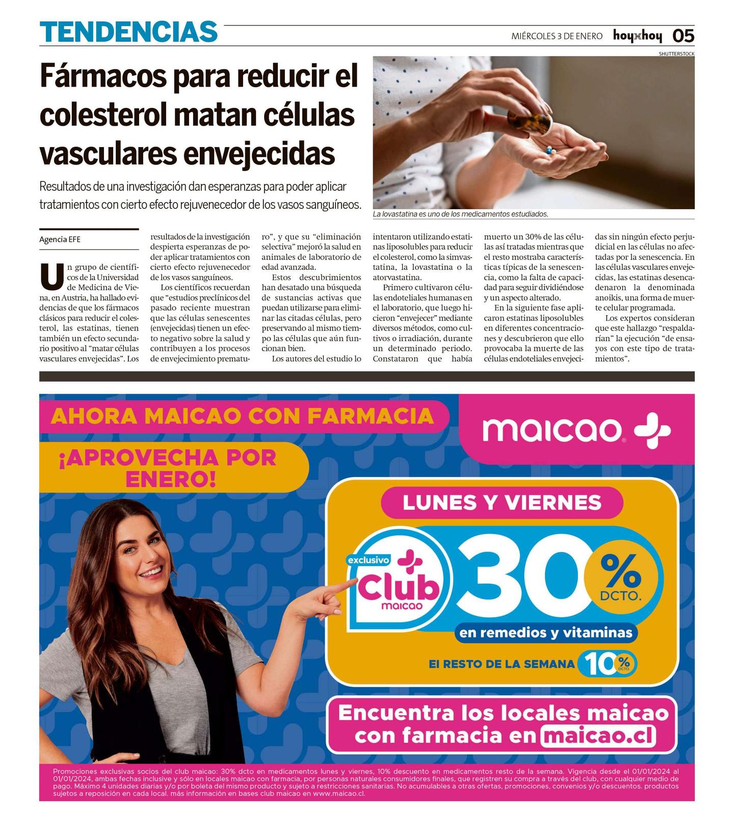 Un grupo de científicos de la Universidad de Medicina de Viena, en Austria, ha hallado evidencias de que los fármacos clásicos para reducir el colesterol, las estatinas, tienen también un efecto secundario positivo al "matar células vasculares envejecidas". Los resultados de la investigación despierta esperanzas de poder aplicar tratamientos con cierto efecto rejuvenecedor de los vasos sanguíneos.