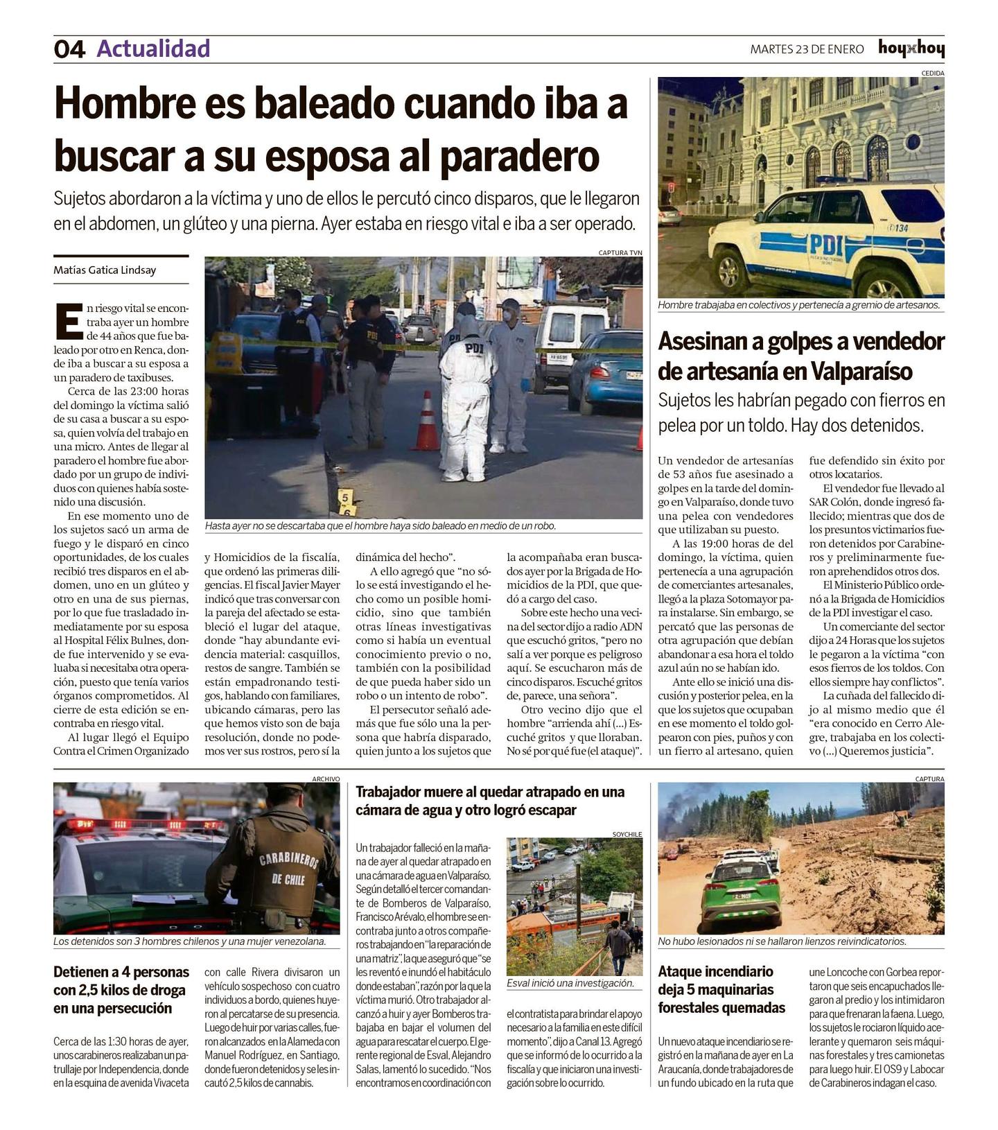 Sobre este hecho una vecina del sector dijo a radio ADN que escuchó gritos, "pero no salí a ver porque es peligroso aquí. Se escucharon más de cinco disparos. Escuché gritos de, parece, una señora".