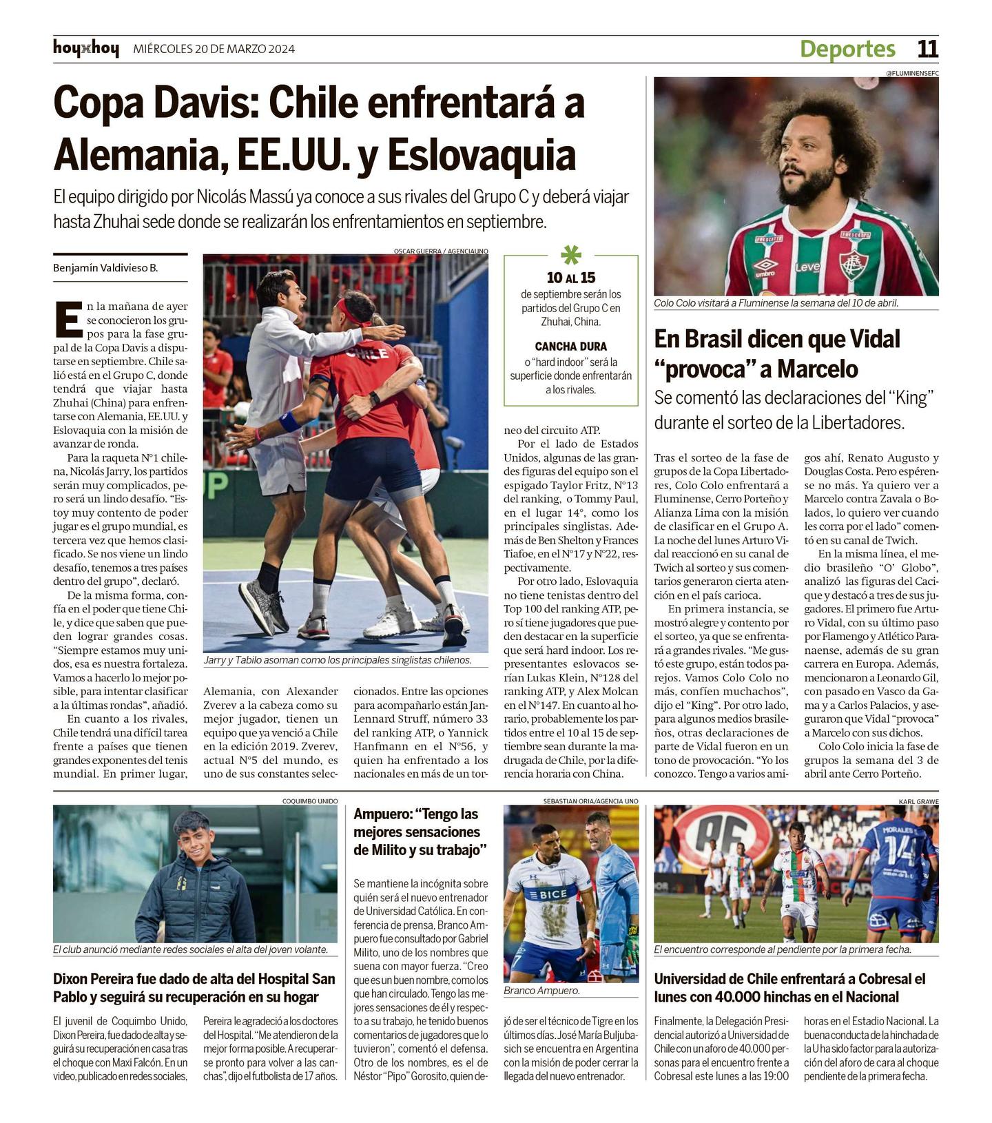 En la misma línea, el medio brasileño "O' Globo", analizó las figuras del Cacique y destacó a tres de sus jugadores. El primero fue Arturo Vidal, con su último paso por Flamengo y Atlético Paranaense, además de su gran carrera en Europa. Además, mencionaron a Leonardo Gil, con pasado en Vasco da Gama y a Carlos Palacios, y aseguraron que Vidal "provoca" a Marcelo con sus dichos.